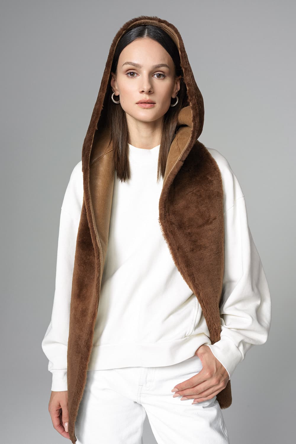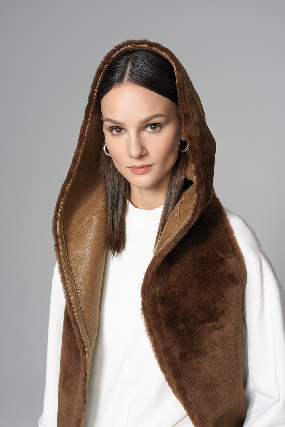 Hera Hooded Merino Lamb Fur Scarf